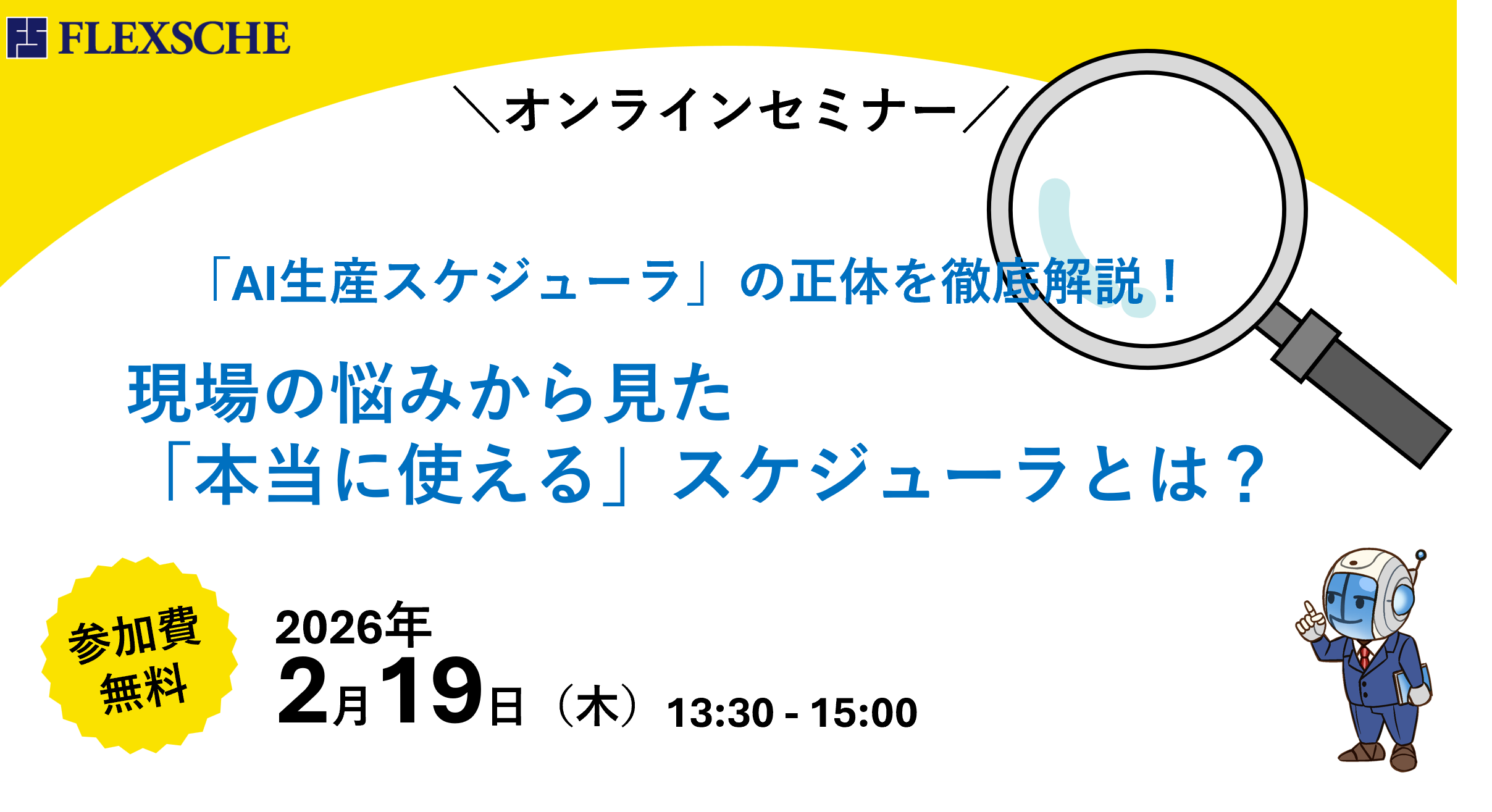 | セミナー名 | 「AI生産スケジューラ」の正体を徹底解説! 現場の悩みから見た「本当に使える」スケジューラとは? |